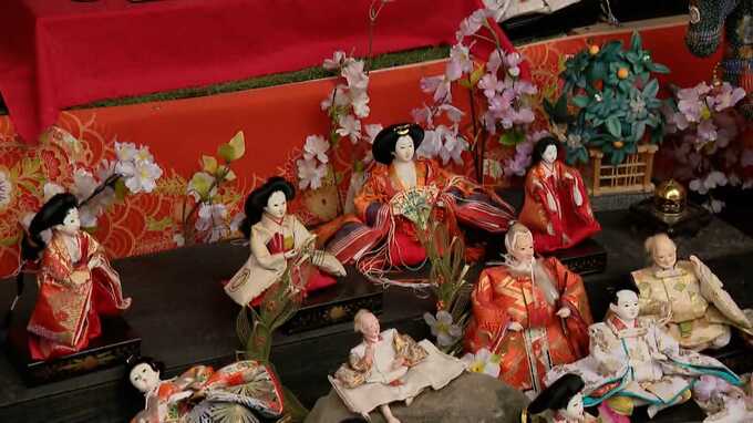 飲食店「白花綜」森永善昌さん「これ全部、寄贈いただいたもの。なくなったのとか壊れたのとか全部いっしょに来てますから。だから模様見ていただくと違うんですよね。三人官女でも姫様でも、違いますでしょ」