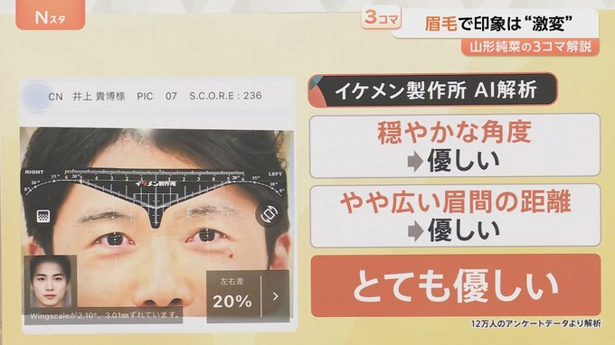イケメン製作所に井上キャスターの「眉毛から見る印象」をAIで解析してもらうと…