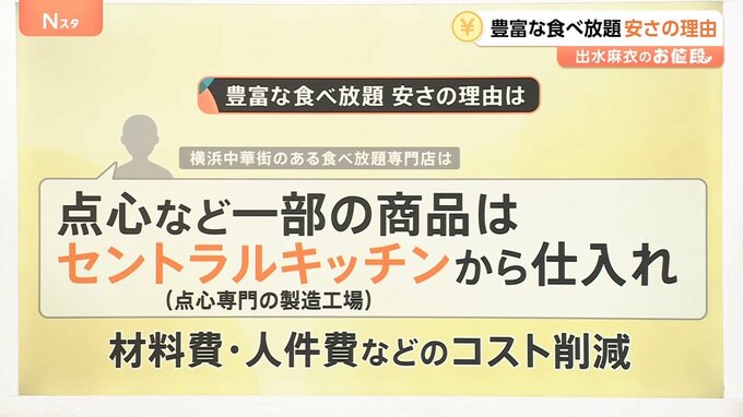したがって、材料費や人件費などコストを削減し、2000円台で多くの品目の食べ放題ができているということです。