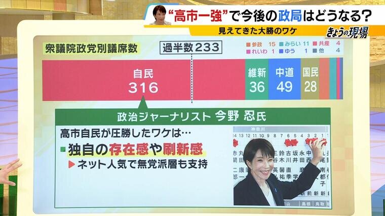 こうした高市総理の戦略により、自民党は「常連客を取り戻した(今野氏)」ということです。