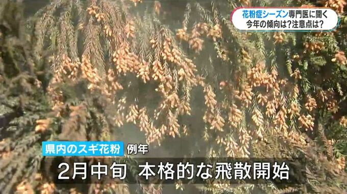 例年、県内では2月中旬から本格的な飛散が始まるスギ花粉。花粉症の人にとっては、目のかゆみやくしゃみ、鼻水などの症状に悩まされる季節が始まります。
