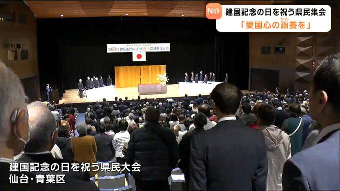 青葉区で開かれた建国記念の日を祝う県民大会には、村井嘉浩知事や郡和子仙台市長などおよそ900人が出席しました。
