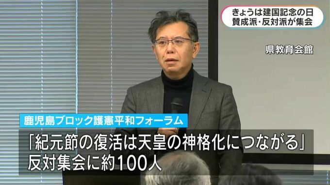 きょう11日は鹿児島市でこの日を祝う会と反対する会がそれぞれ集会を開きました。