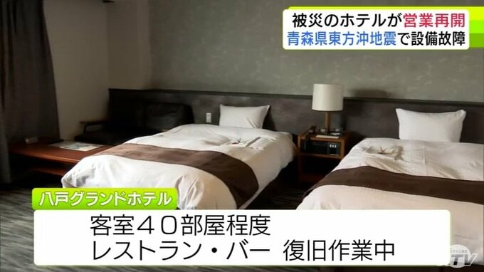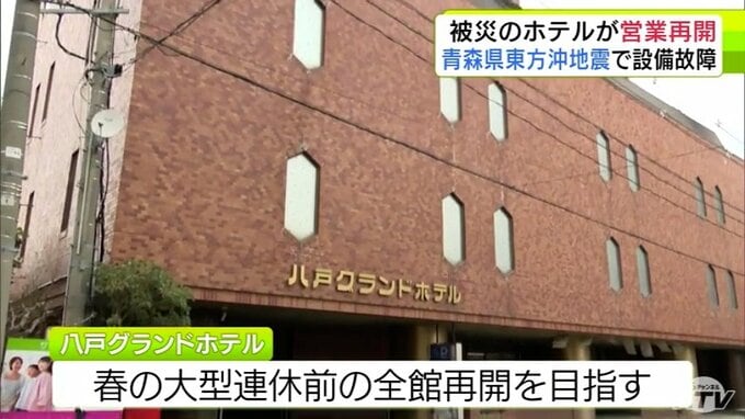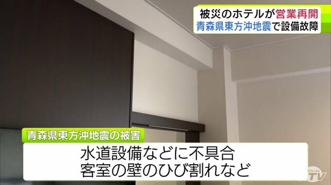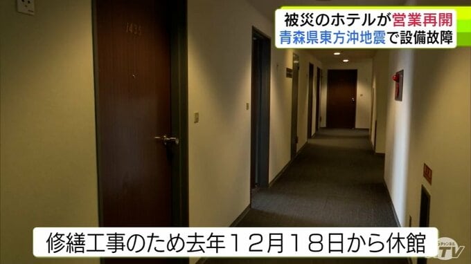去年12月8日に起きた青森県東方沖地震の影響で水道設備などに不具合が確認されたほか、10階建ての高層部の部屋を中心に壁のひび割れや壁紙が破れる被害があり修繕工事のため休館していました。