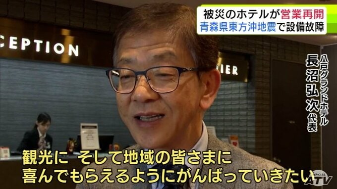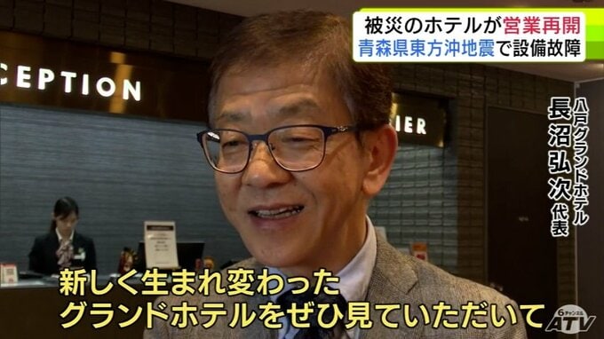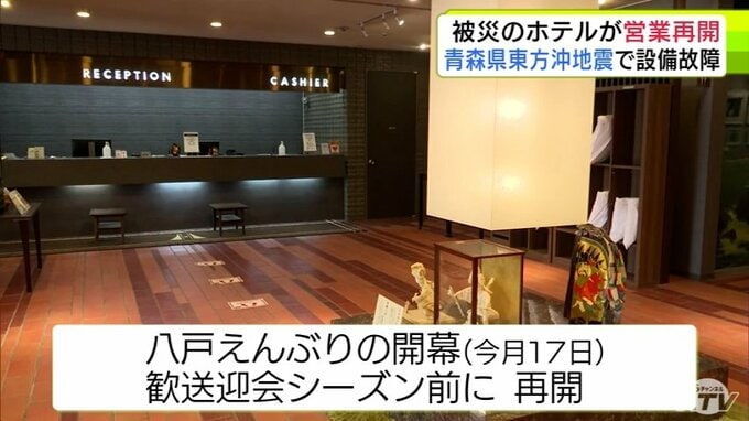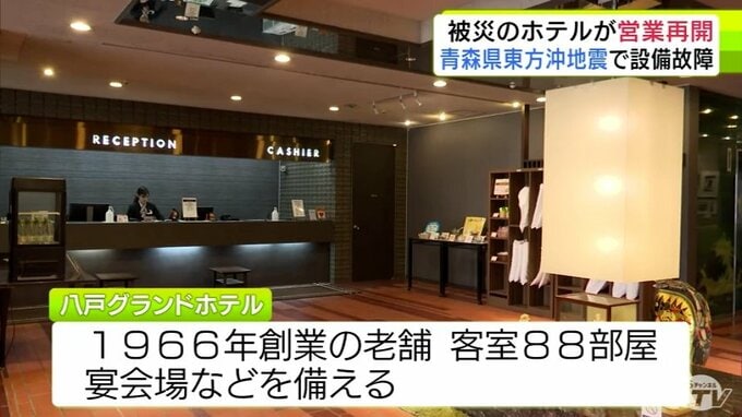 12月の青森県東方沖地震から約2か月、被害をうけ改修工事のために営業を休止していた八戸市の八戸グランドホテルが11日再開しました。