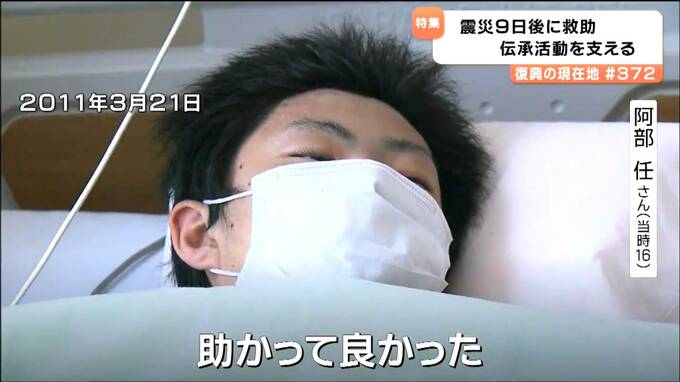 震災発生から9日後に救助された高校生。当時16歳だった阿部さんです。