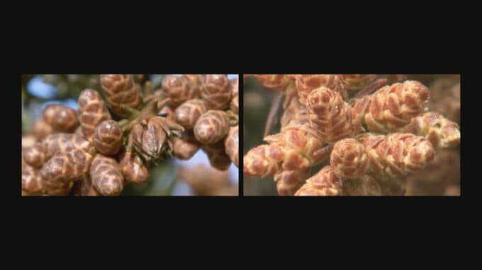 つまり、今後の春の天候で花粉が増えたり減ったりするのではなく、去年の夏に、花粉を飛ばす雄花は生成されていて、今、成長は休眠状態。暖かくなったときに、雄花に隙間ができて、中の花粉を飛ばすのです。
