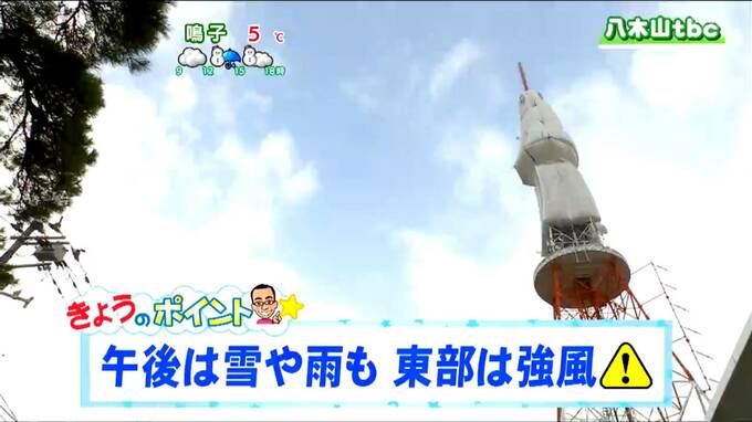 しかし、12日は気圧の谷が通過する影響で、昼過ぎから夕方にかけて西部を中心に雪や雨が降る見込みです。また、西寄りの風がやや強く吹いてくるため、東部では日中は強風に注意が必要です。