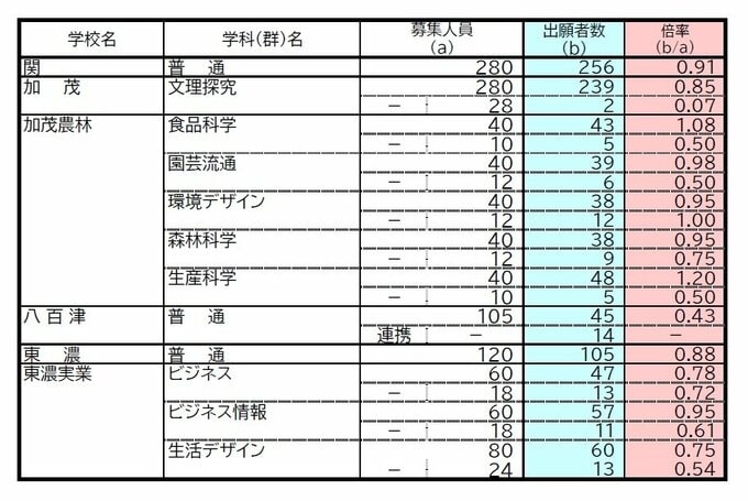 【岐阜県公立高校入試2026】出願状況 第一次・連携型選抜・通信制前期選抜の志願倍率…