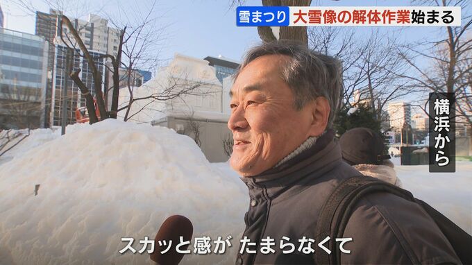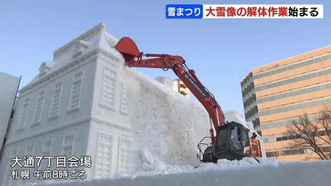大通公園では、午前8時から大雪像の解体作業が始まりました。