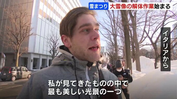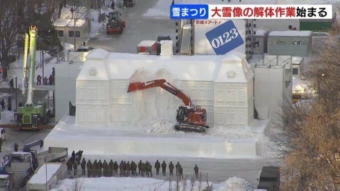 11日閉幕した「さっぽろ雪まつり」ですが、会場の大通公園では、大雪像の解体が始まりました。