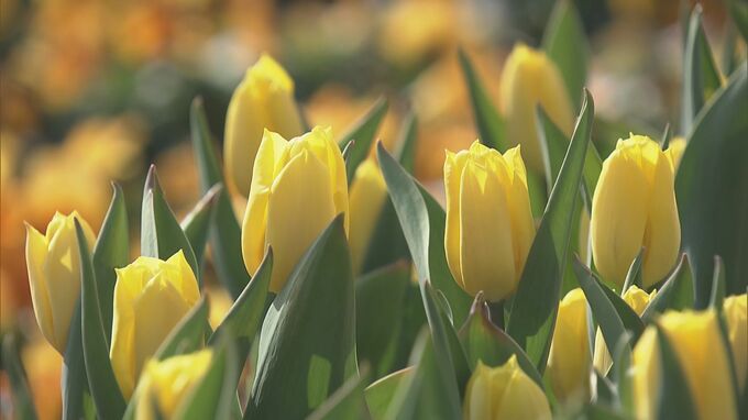 岐阜県海津市の木曽三川公園センターで、開花時期を早めた「アイスチューリップ」が見頃を迎えています。