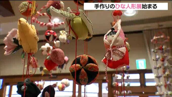 仙台市太白区の観光案内所「秋保・里センター」で2月12日から始まった「手づくりおひな様展」には、地元の手芸サークルなどが出品した約380点の作品が並びました。