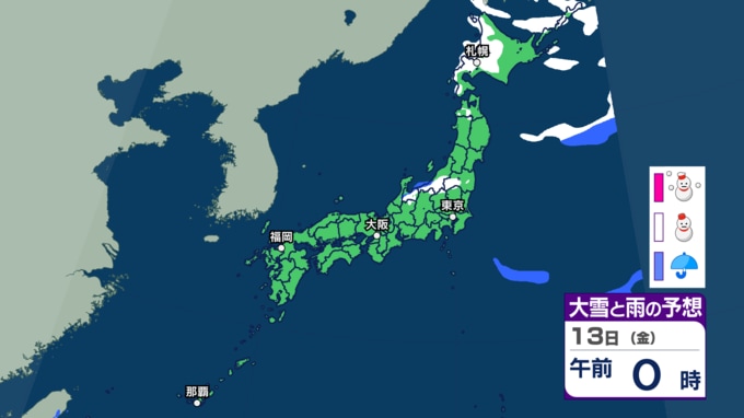 14日になると西日本から雨になり、夜から15日にかけて九州、四国、中国、近畿で雨となりそうです。北海道も雪が予想されています。