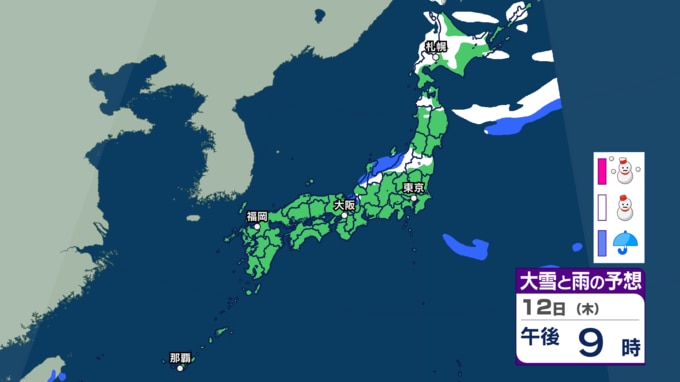 13日にかけて東北や北海道では日本海側を中心に雪や雨が続きそうです。