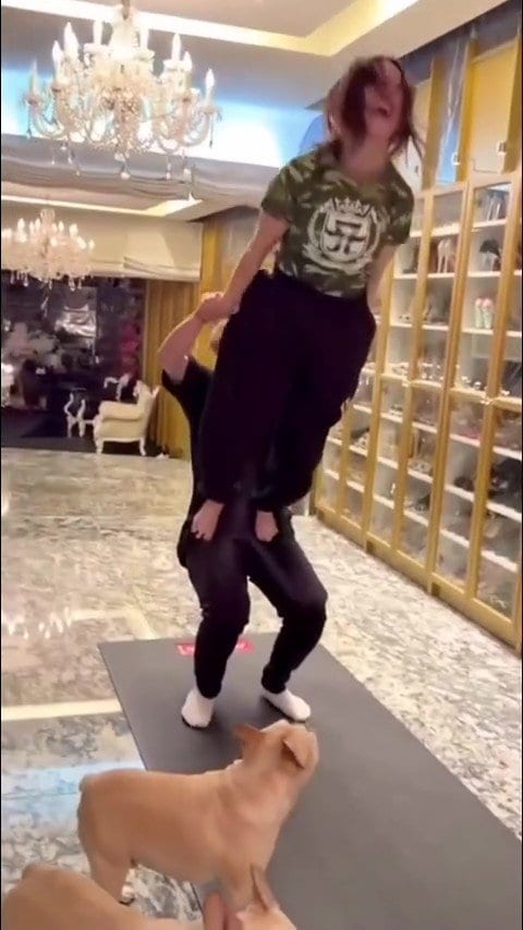 最後はスタッフの脚の上で垂直に立ち上がるポーズをピタリと決め、満足げな笑顔でフィニッシュを飾りました。