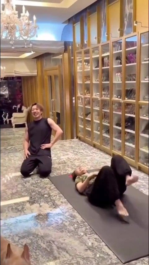 浜崎さんは「ハンドスタンドへの道」と題した動画を投稿。トレーニングに励む姿を披露しています。