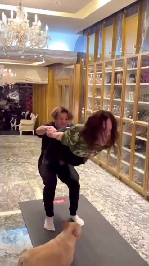 浜崎さんはこの激闘を振り返り、「途中で2人共に腕と腿前と腹筋が終了しました(笑)」と報告。
