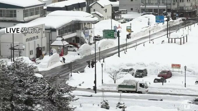 雪が降り続く青森市 積雪は124cm このあとも冬型の気圧配置が続き雲の広がりやすくなる気圧の谷の影響で県内は「雪」や「曇り」の天気か