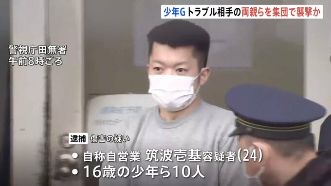 少年グループ11人を傷害の疑いで逮捕 息子のバイクの貸し借りめぐり…母親の乗る車に車を追突させ、大けがなどさせたか 警視庁 To view this video please enable JavaScript, and consider upgrading to a web browser that supports HTML5 video TBSテレビ 2026年2月12日(木) 13:53 国内 少年グループ11人を傷害の疑いで逮捕 バイクの貸し借りをめぐりトラブルとなった少年の両親らを集団で襲い、けがをさせたとして少年ら11人が警視庁に逮捕されました。 傷害の疑いで逮捕されたのは、自称自営業の筑波壱基容疑者(24)と、16歳の少年ら10人です。