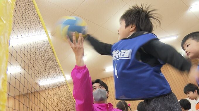 選手たちからバレーボールのコツを教わった園児たちは元気いっぱいにアタック!寒さを吹き飛ばすような歓声が響いていました。