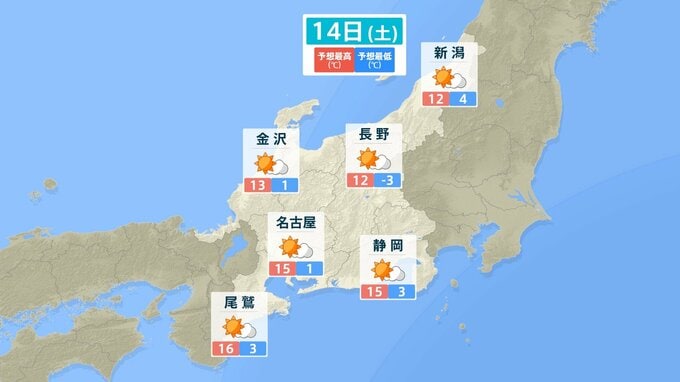 北陸地方の向こう2週間の気温は、寒気の影響を受けにくいため高い日が多く、20日頃からはかなり高くなる可能性があります。