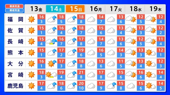 沖縄・奄美の気温は、向こう5日間程度は高い日が多いでしょう。その後は平年並でしょう。