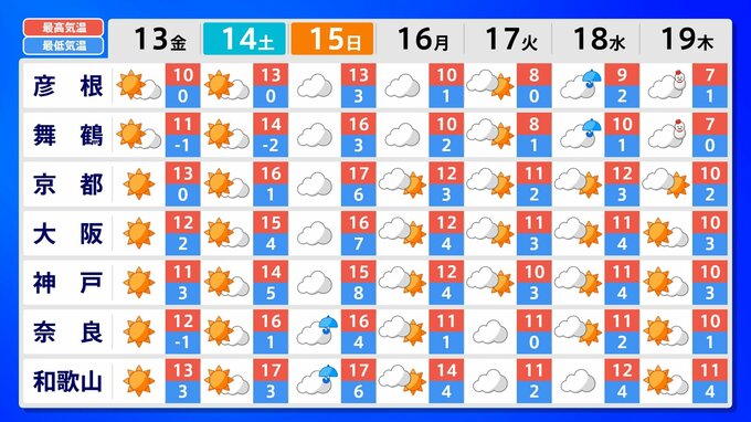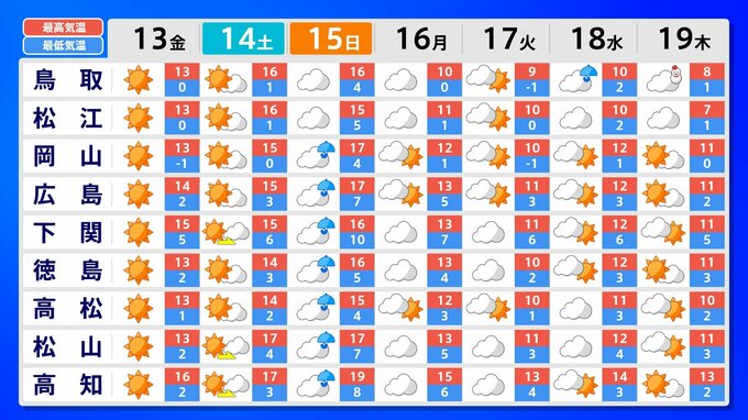 一方、北~東~西日本の向こう2週間の気温は、寒気の影響が弱いため高い日が多く、北日本と東日本では15日頃と19日頃からはかなり高い日もある見込みです。農作物の管理等に注意してください。