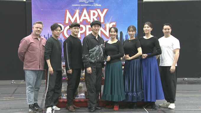 ミュージカル『メリー・ポピンズ』の稽古場公開イベントが行われました。場面披露の後には、メリー・ポピンズ役の濱田めぐみさん、笹本玲奈さん、朝夏まなとさん、バート役の大貫勇輔さん、小野田龍之介さん、上川一哉さんらが公演への意気込みを語りました。