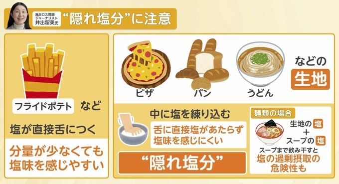 食品ロス問題ジャーナリストの井手留美氏によると、“隠れ塩分”に注意が必要です。