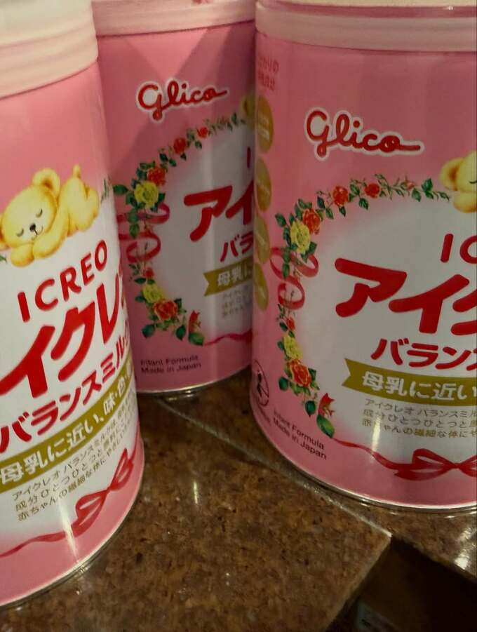 さらに翔子さんは「混合でミルク ガンガンへります」「ふたごのミルク消費がすごい」と、愛用の粉ミルク缶がびっしり並ぶ様子も投稿。「ふたりぶん母乳でたらいいのにそんなわけにもいかず」と、母乳と粉ミルク併用のリアルを知らせています。