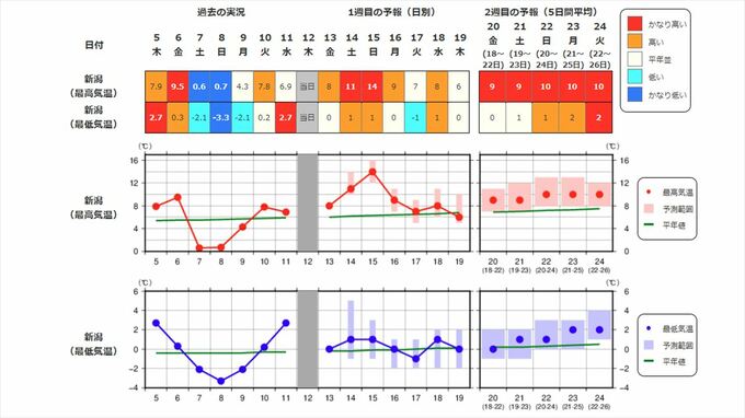 北陸地方の向こう2週間の気温は、寒気の影響を受けにくいため高い日が多く、20日頃からはかなり高くなる可能性があります。