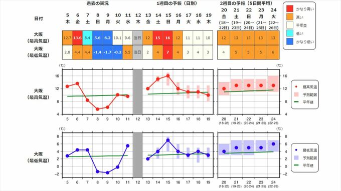 日本の東海~北海道が真っ赤に 北海道は+2.9℃以上、関東甲信は+2.6℃以上など 東北、北陸、東海 20日前後から平年よりかなりの高温になる見込み 積雪の多い地域は「なだれ」に注意を【早期天候情報・2週間気温予報】 テレビ山梨 2026年2月12日(木) 17:30 国内 天気 近畿地方 2週間気温予報
