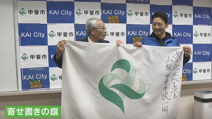 「もうワクワクしかない」 エベレスト挑戦前に表敬訪問 富士山ガイドの登山家 山梨・甲斐市役所 テレビ山梨 2026年2月12日(木) 20:09 国内 保坂市長は山頂で掲げる旗にメッセージを書いて激励しました。 旗は来週からスポーツデポ甲府昭和インター店に展示され、出発まで誰でも応援メッセージを書くことができます。