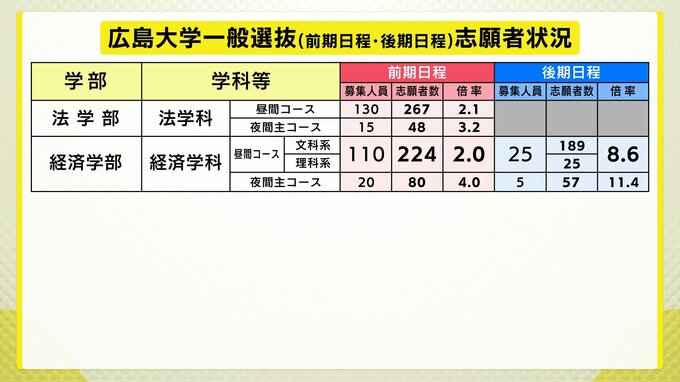 【広島大学】 2026年度一般選抜志願者状況(確定数) 全体の志願倍率は前期日程2.2倍 後期日程は8.1倍 医学部医学科は4.2倍