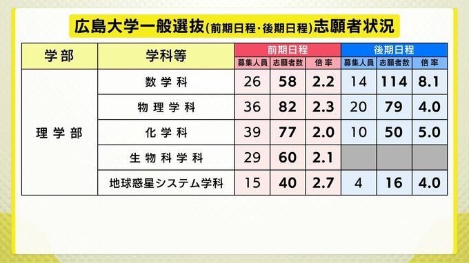 【広島大学】 2026年度一般選抜志願者状況(確定数) 全体の志願倍率は前期日程2.2倍 後期日程は8.1倍 医学部医学科は4.2倍