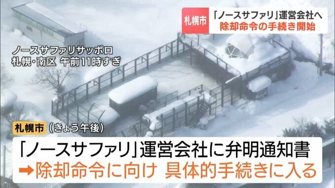 札幌市は12日午後、ノースサファリサッポロを運営するサクセス観光に弁明の機会を与える通知書を手渡し、除却命令を出す具体的な手続きに入りました。