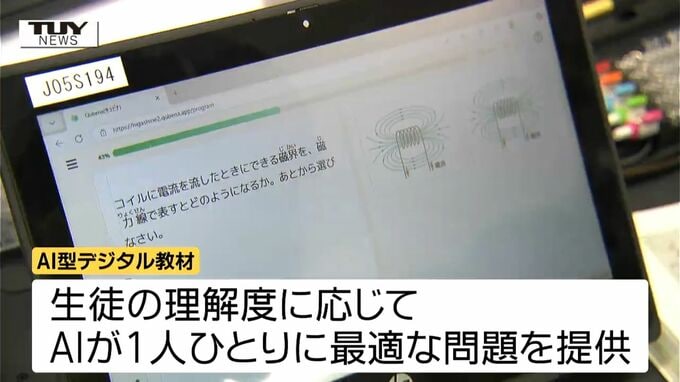 取り残される生徒がいない学習環境を作ろうと、山形県東根市の中学校できょう、理解度に応じた問題を提供するAI型教材を使った授業が行われました。