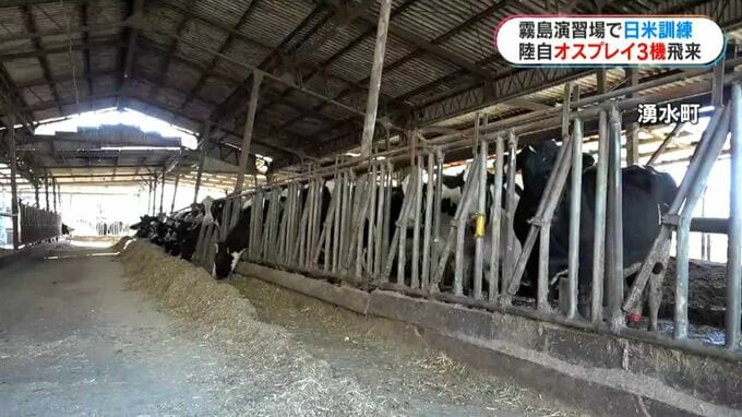 演習場の近くにある湧水町の酪農家です。牧場では機体の音が響いていました。