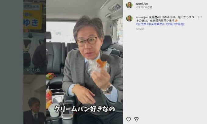衆院選の選挙期間中だった1月30日、応援演説に向かう車の後部座席で安住さんはクリームパンをほおばっています。「パンの中でクリームパンが一番好き」「ゆっくりレストランで食事をする機会はない」と語るなど、動画を全て見ると、忙しい合間を縫って朝食を食べる様子となっています。ところが…。