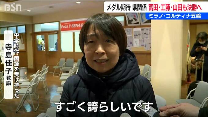 中学校で国語を受け持ったという寺島佳子教諭も、パブリックビューイングの会場で冨田選手を見守っていました。