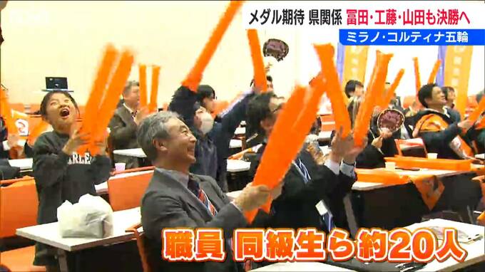 新潟市の開志創造高校からも在籍する工藤璃星選手に向けて、職員や同級生らおよそ20人から声援が送られました。