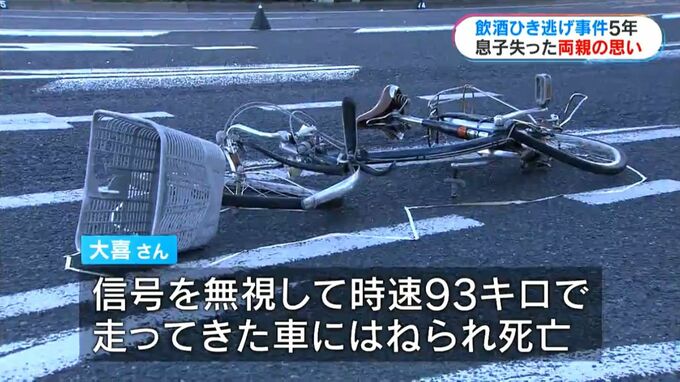 しかし、5年前の2月9日。下宿先を出たばかりの大喜さんは交差点を自転車で渡っていたところ、信号を無視して時速93キロで走ってきた車にはねられ死亡。