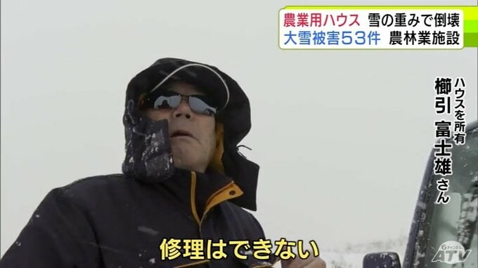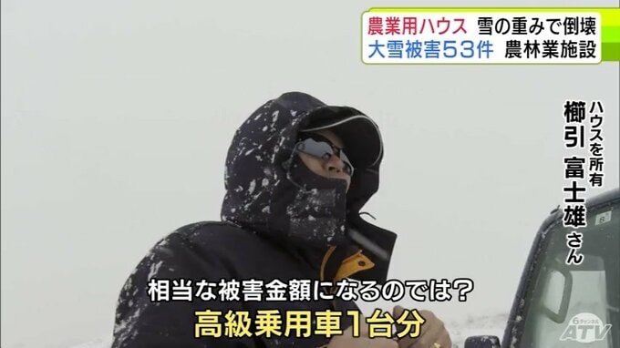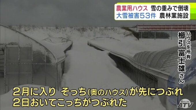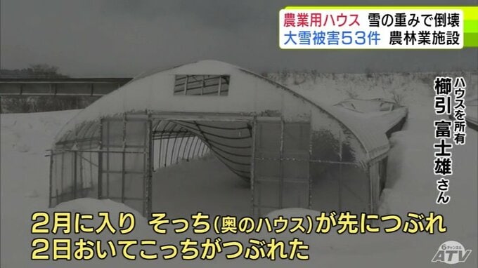 3. 被害金額は「高級乗用車1台分」大雪で約50mの2棟の農業用ハウスが押しつぶされる「(屋根雪)が落ちてこない…」 青森県五所川原市