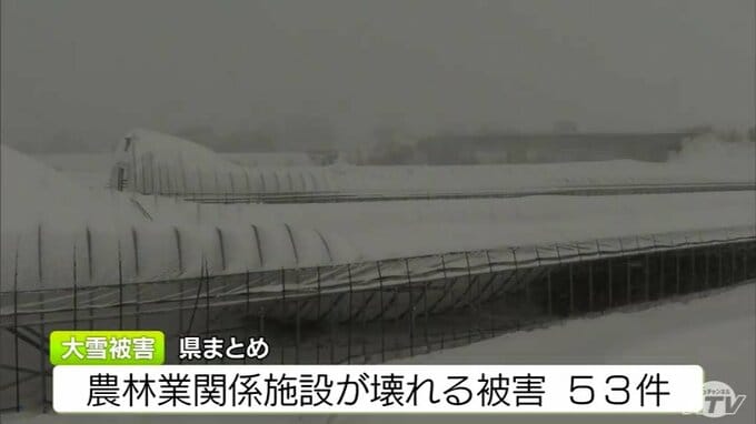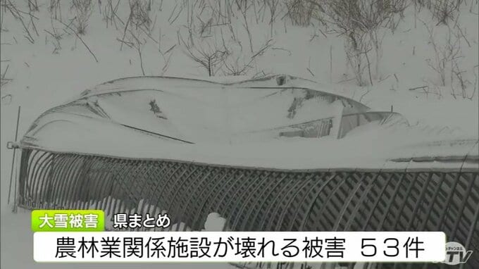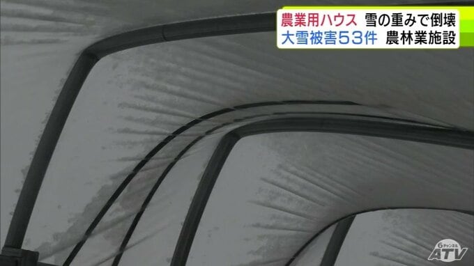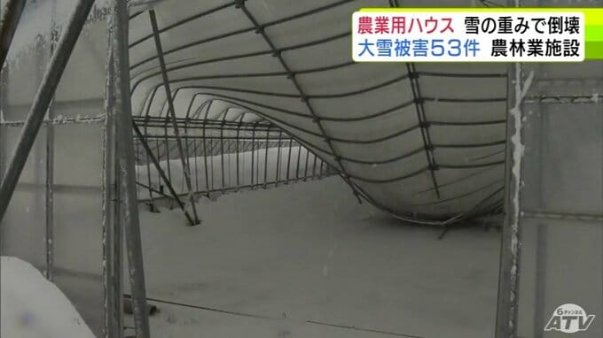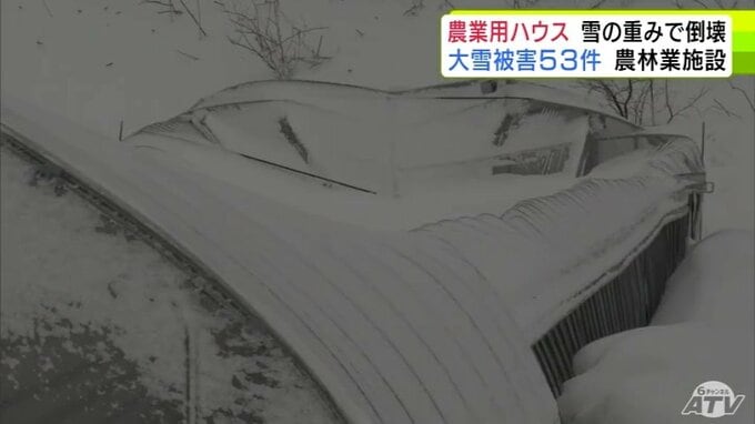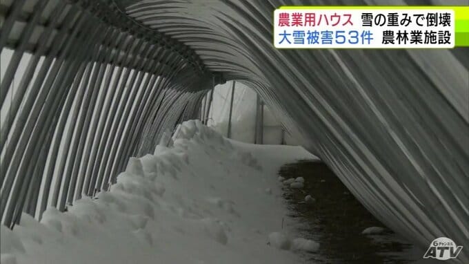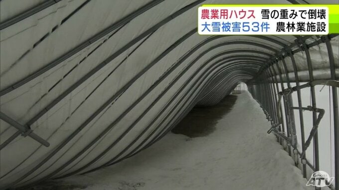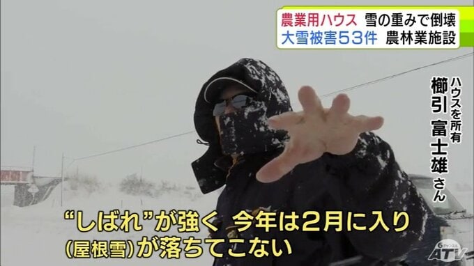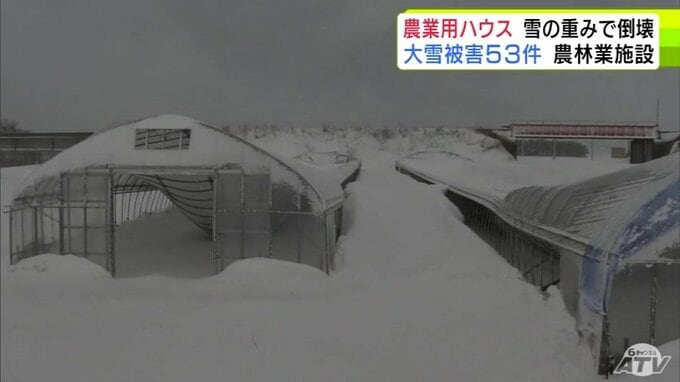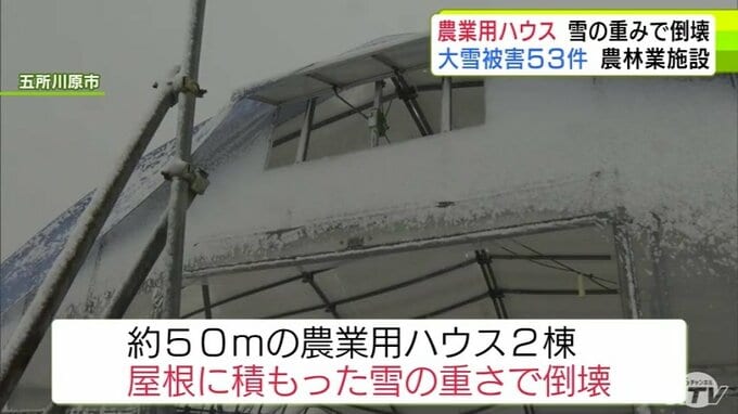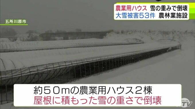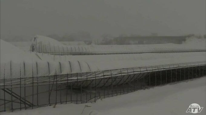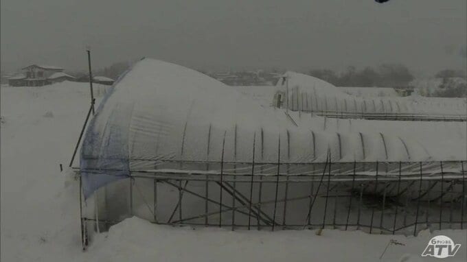 被害金額は「高級乗用車1台分」大雪で約50mの2棟の農業用ハウスが押しつぶされる「(屋根雪)が落ちてこない…」 青森県五所川原市