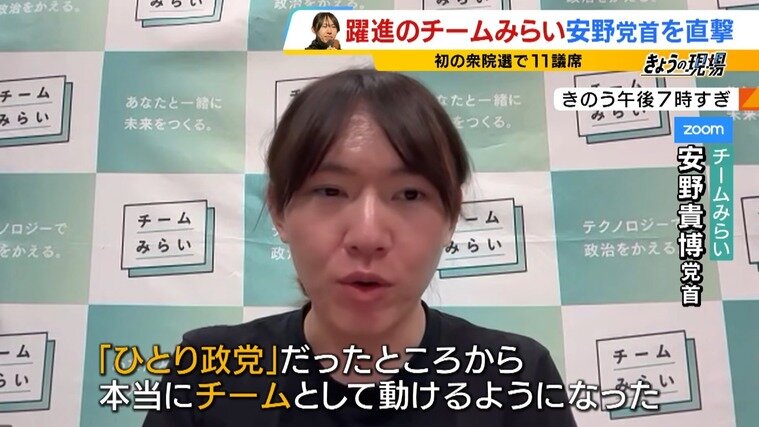 「チームみらい」の安野貴博党首(35)。今回の躍進について、自ら次のように分析しています。