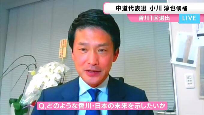 「それから食料は7割、エネルギーは9割が輸入依存。あらゆる面で社会の持続可能性が崩壊している。これを何とか正常軌道に戻していくには、本格的な改革が必要で、それを本当に長年お支えいただいた香川の有権者の皆様への恩返しの意味でも、しっかり社会を変えていくことで、『俺たちが選んだ、俺たちが育てた小川さんが本当に国のため、郷土のために頑張っている』というふうに誇りに思っていただけるように努力したいと思ってます」
