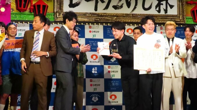 相方の片山智勝さんは〝(所属する)人力舎から優勝者が出ていないので、トロフィーを持って帰れるのが嬉しい〟と語ると、〝たけしさんから名前が長いので「スパイシーにしたらどうか」って言われたけど、「スパイシーガーリック」でやっていきたい〟とたけしさんの隣で宣言。会場に集まった報道陣を沸かせました。