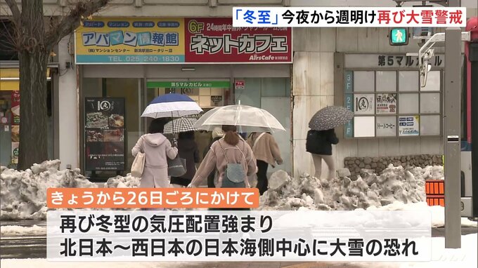 日本付近は週明けの26日ごろにかけ再び強い冬型の気圧配置となり、日本海側を中心に大雪になるおそれが出ていて、交通障害や暴風雪に警戒が必要です。記録的な大雪に見舞われている新潟県では広い範囲で雨となって…