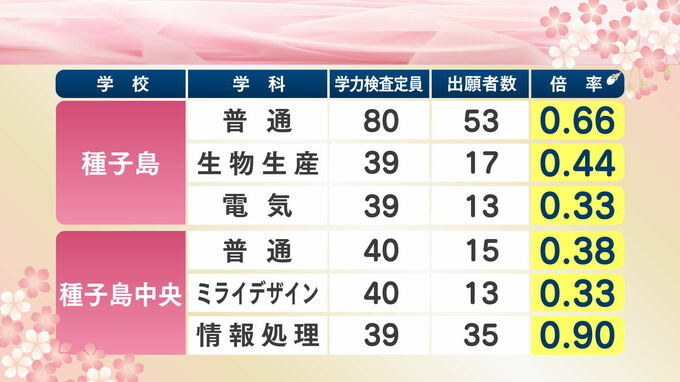 鹿児島県公立高校入試倍率【全校掲載】高倍率は鹿児島南(体育)、玉龍、鹿児島中央、甲南、鶴丸【令和8年度高校受験志願倍率と出願者数】2026 南日本放送 2026年2月13日(金) 14:52 国内 熊毛学区 種子島、種子島中央、屋久島です。